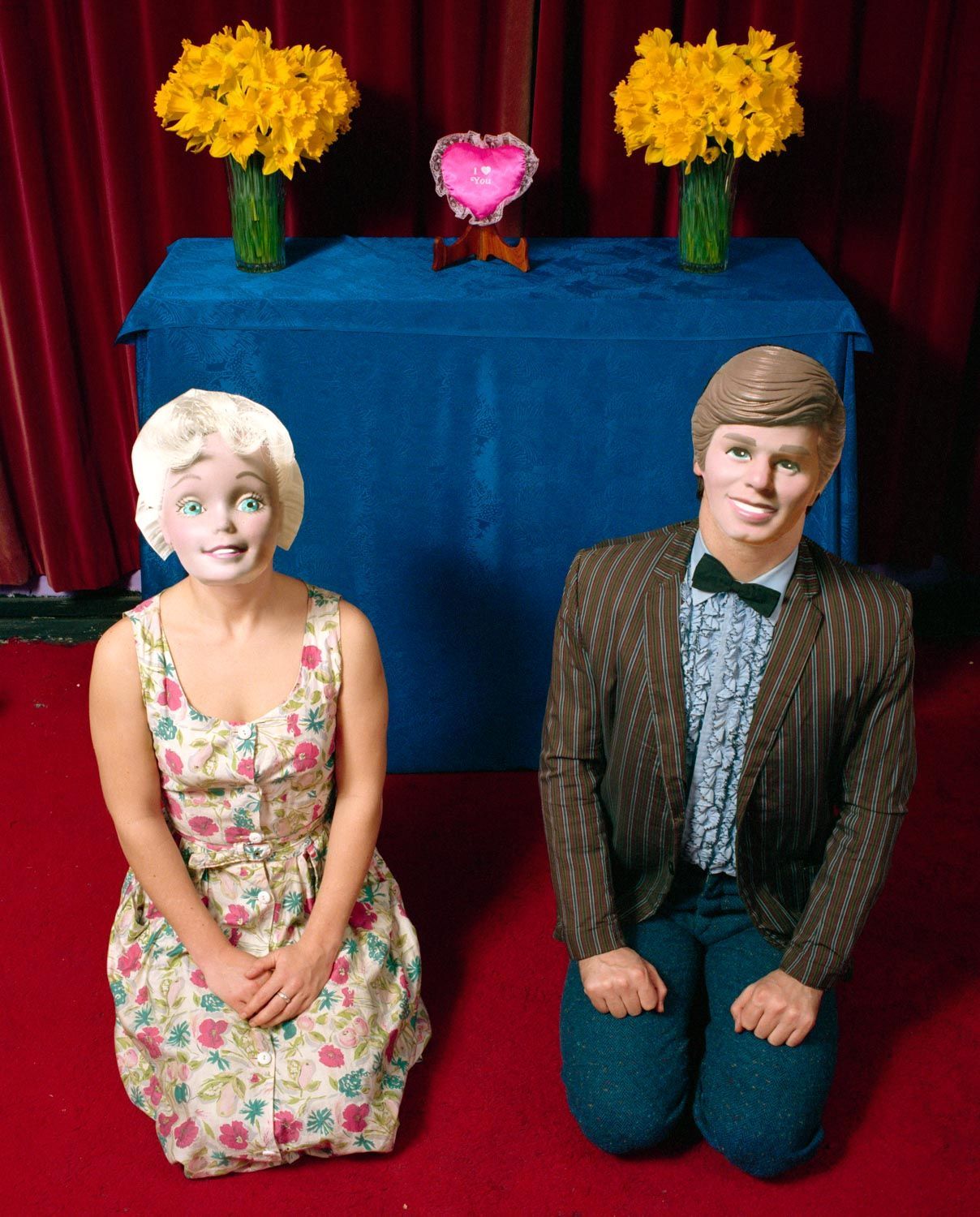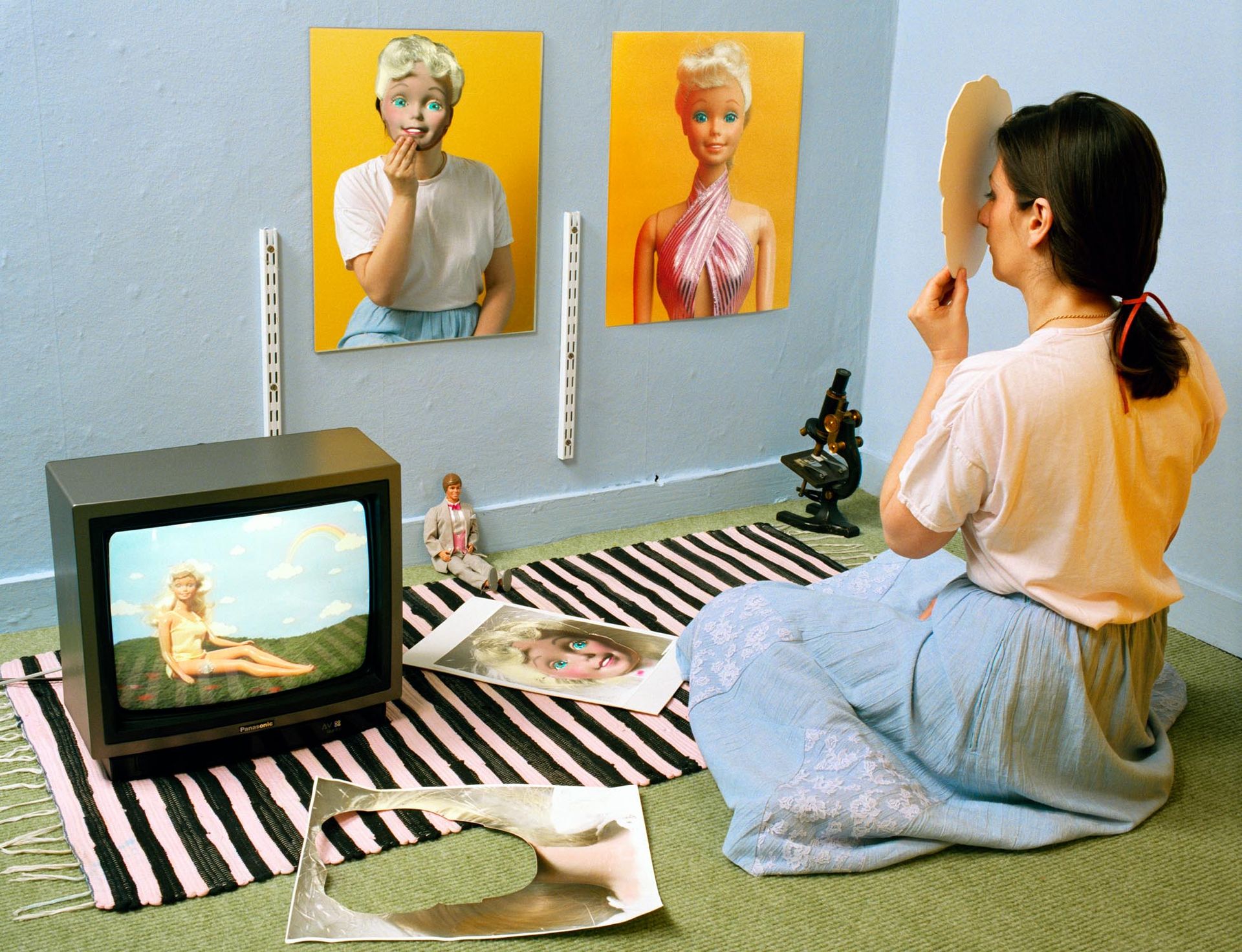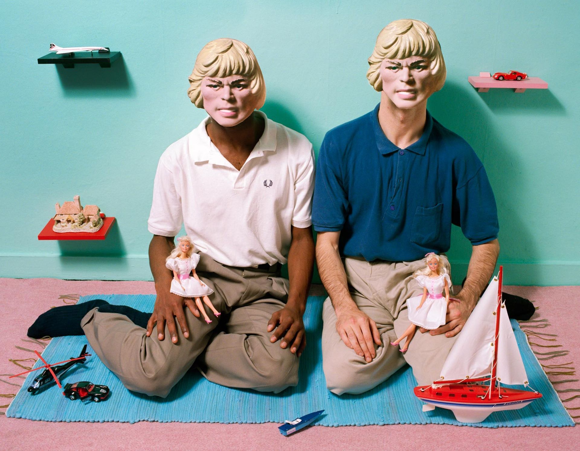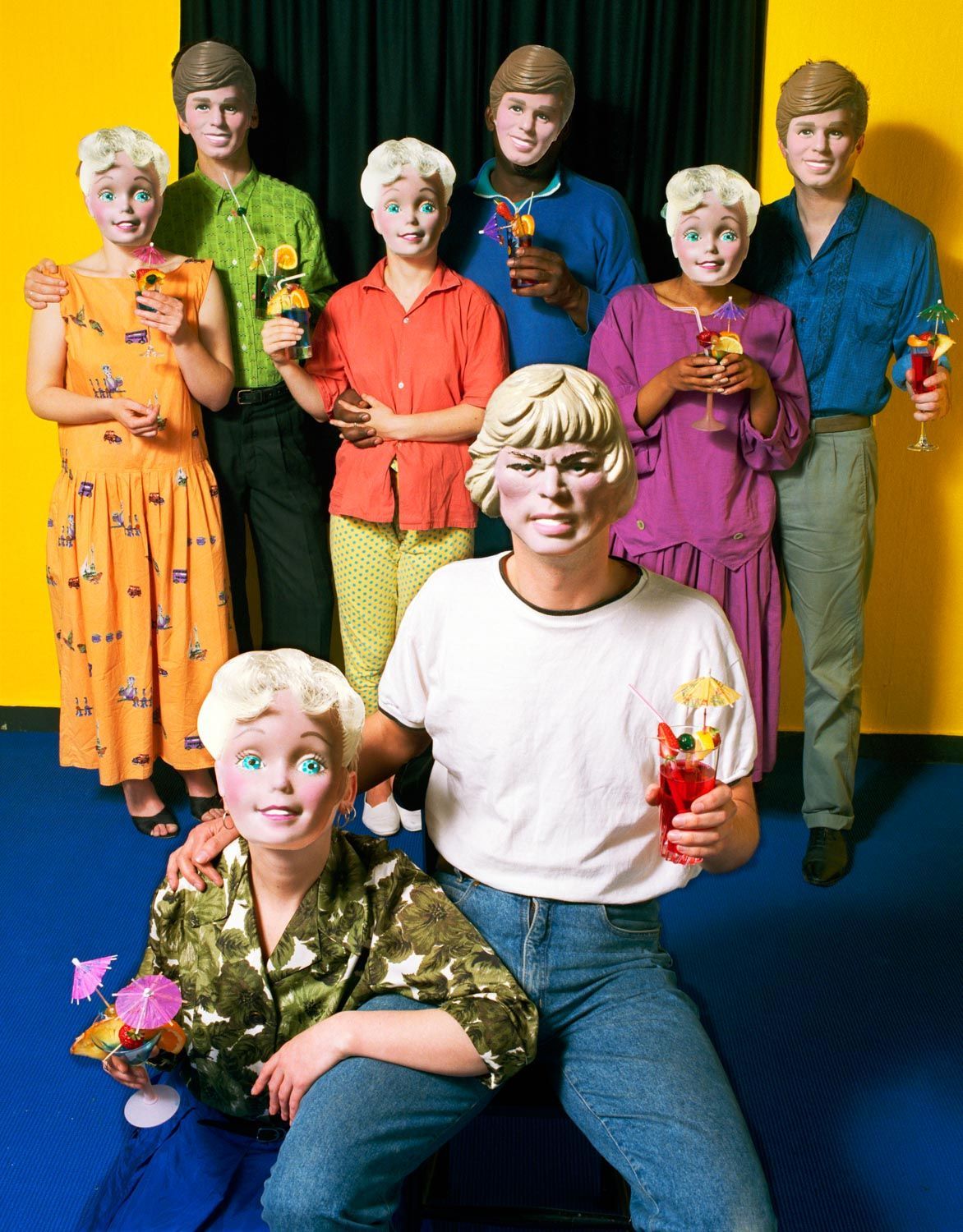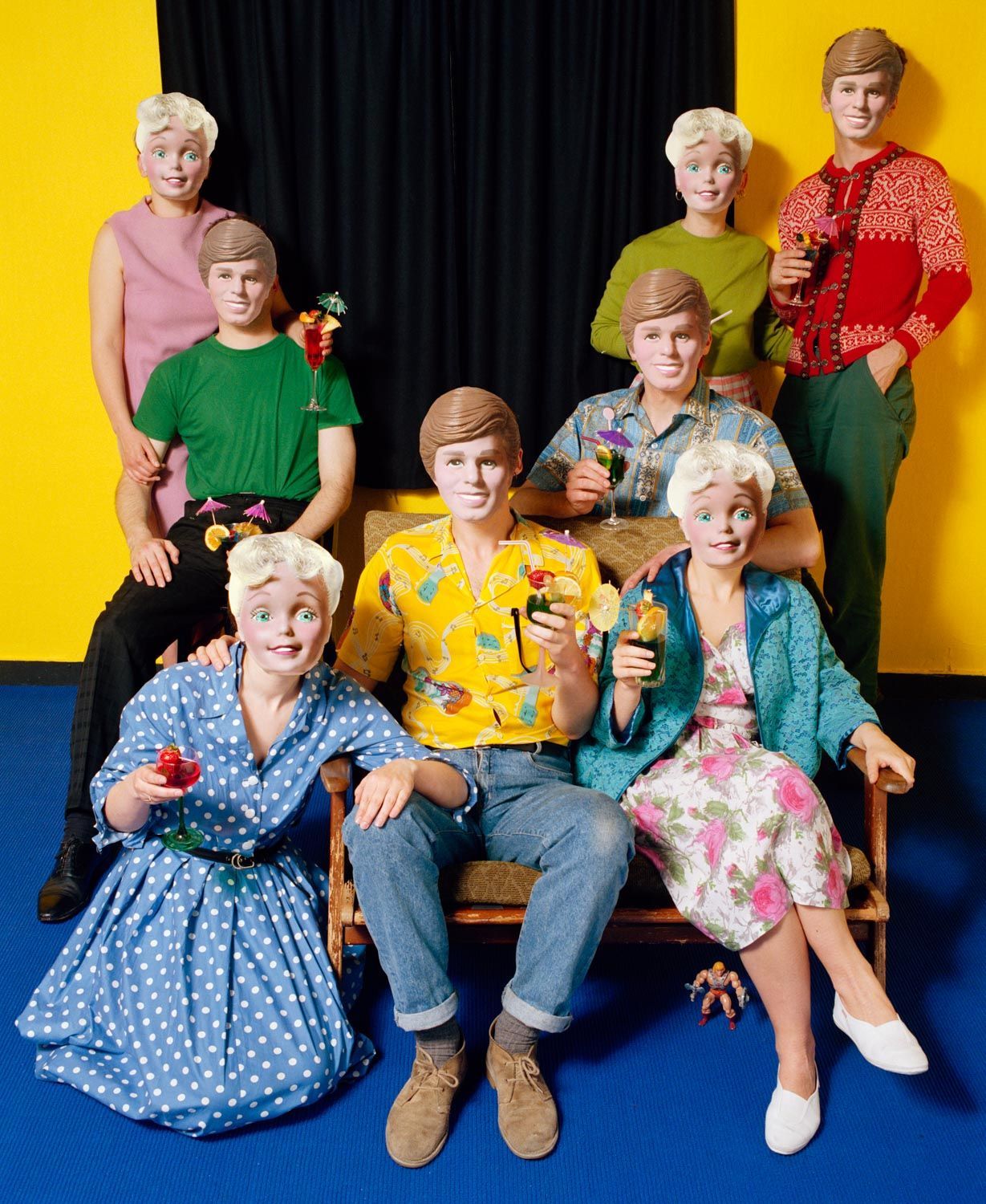 I made photographic masks of Barbie Doll, Ken Doll, and He-Man and actors wore the masks “in situ” in these constructed tableaux. These images were made before photoshop, so they are single exposure images.