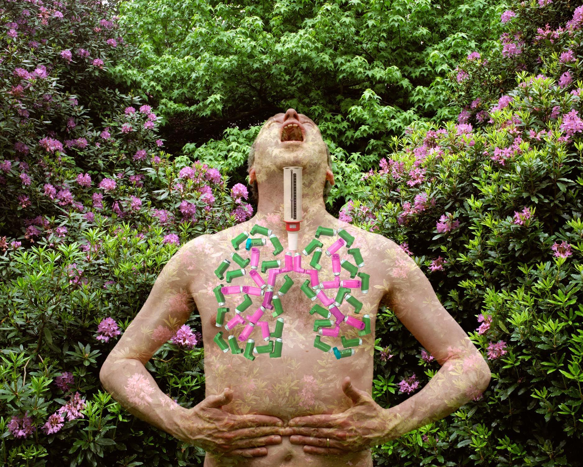 I have used Photoshop in this work to montage images together and to manipulate my features or body shape as required. Flowers are present in every image and provide a thread through the series until the end of the series when the flowers enter my body. I think that my practice as a psychiatrist has allowed me to integrate and work through the different aspects of my personality, and the life stages I have lived through.