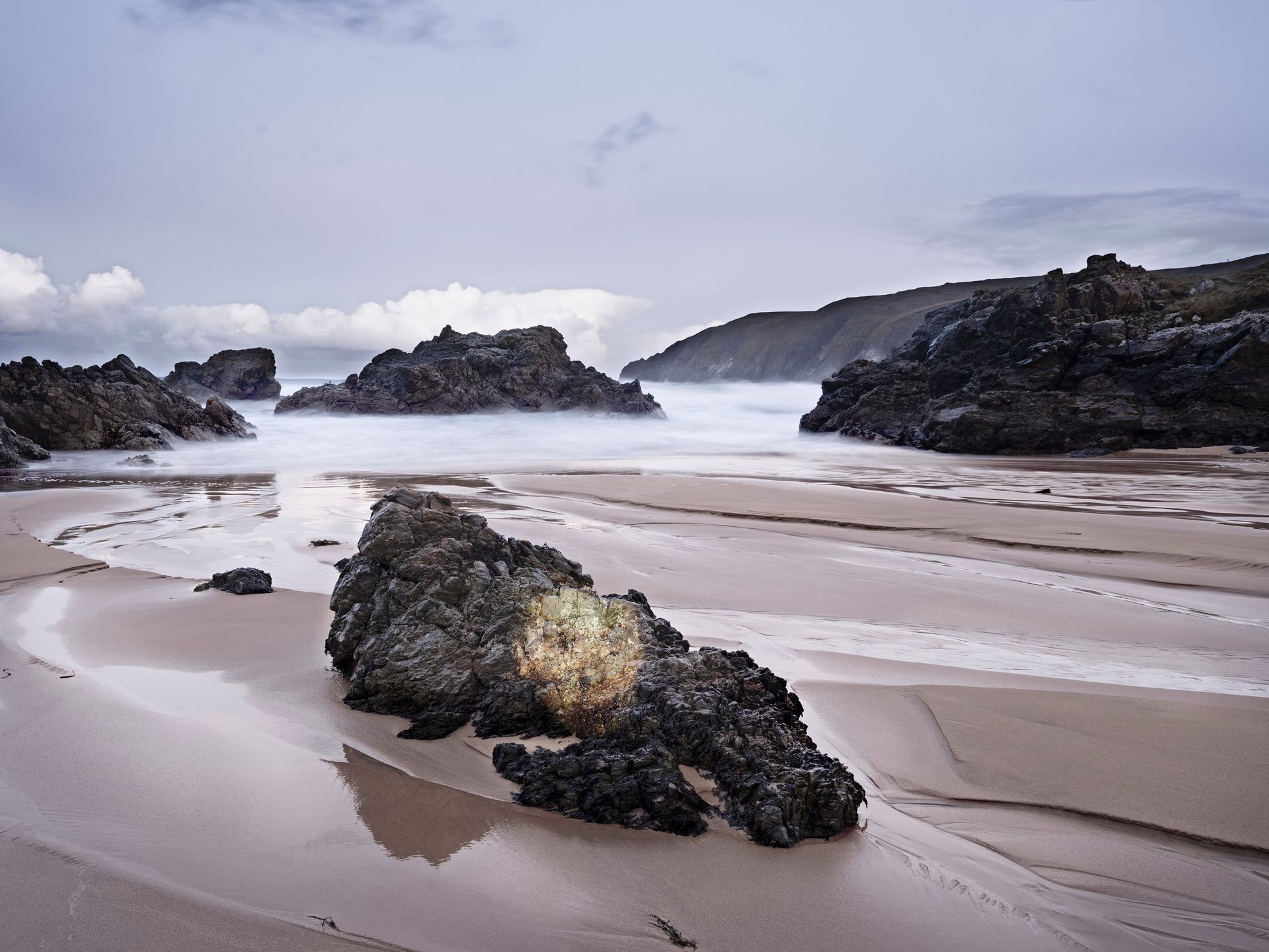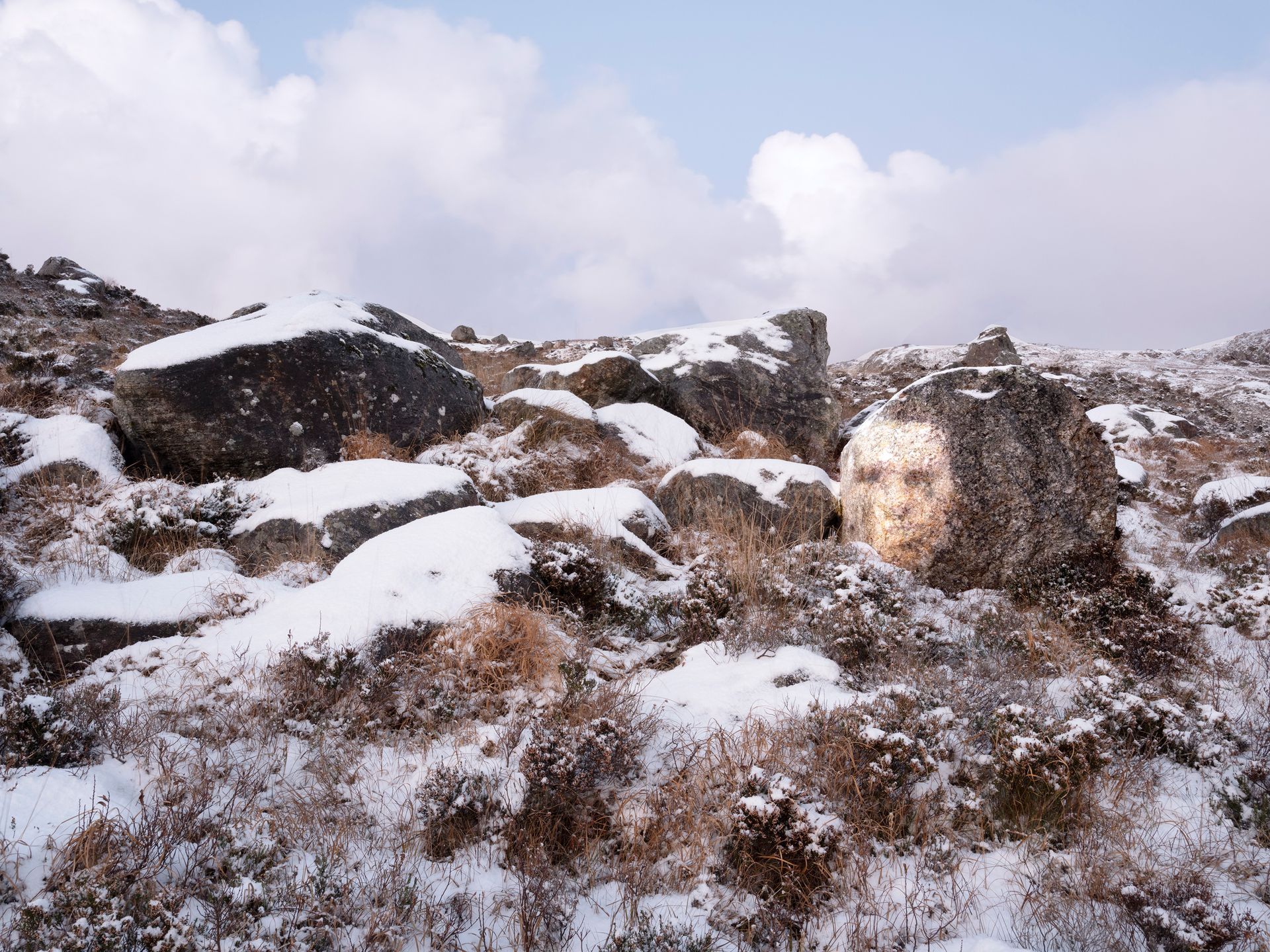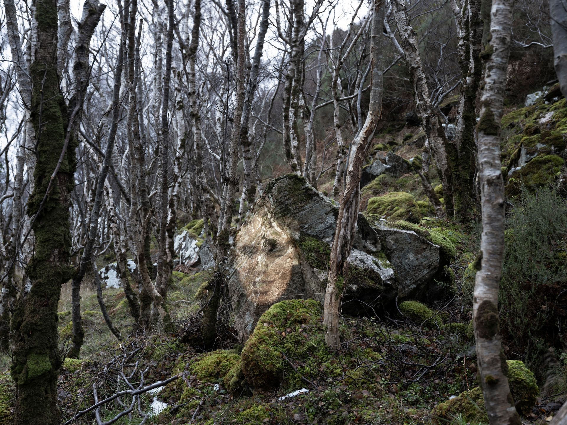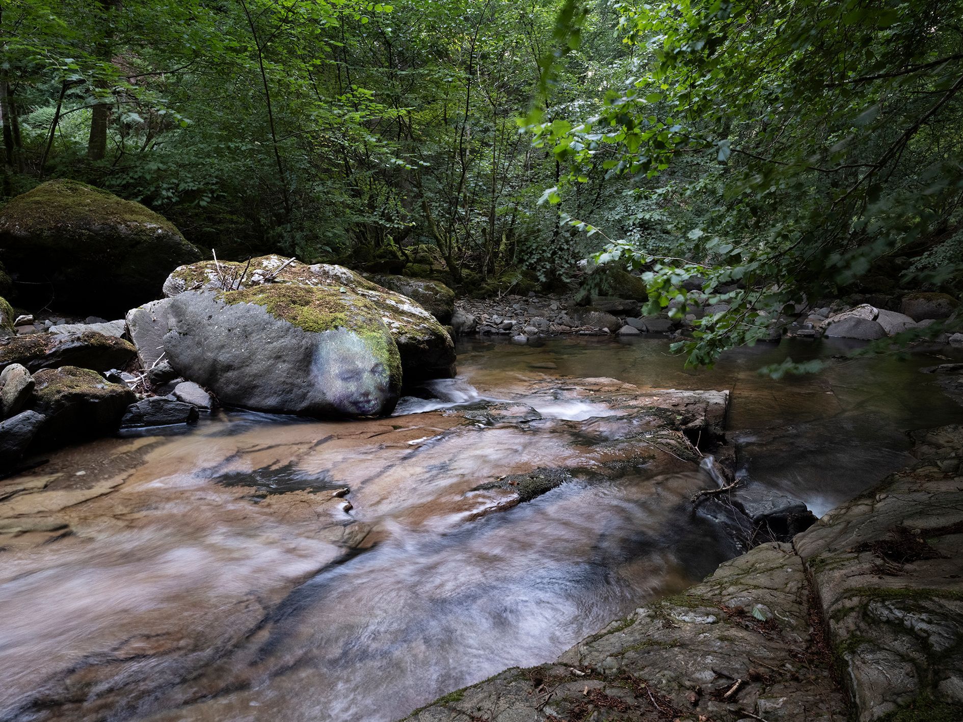 A journey in time. The artist travelled to places in Scotland that were significant to him from his early life. In these places he made photographs while physically projecting images of his younger self into the landscape.